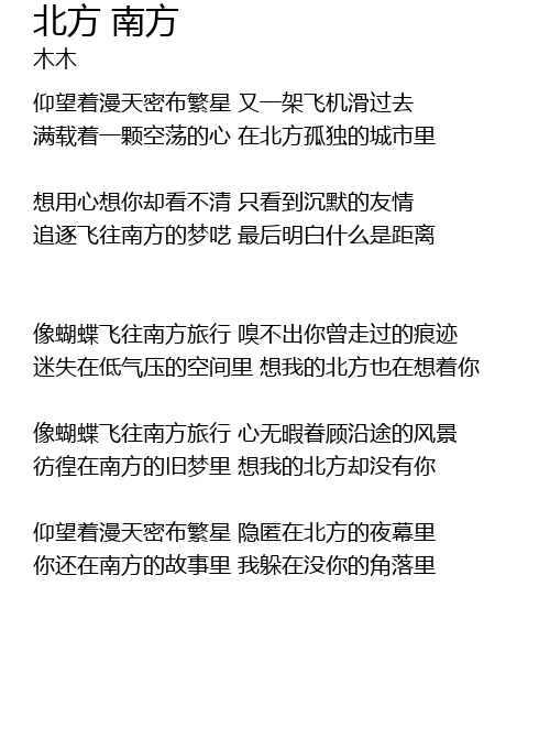 | páng huáng zài nán fāng de jiù mèng lǐ xiǎng wǒ de běi fāng què méi yǒu nǐ | |