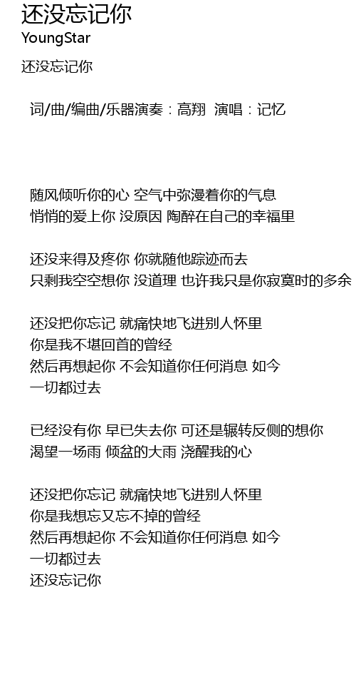 | 词/曲/编曲/乐器演奏:高翔 演唱:记忆 | |
