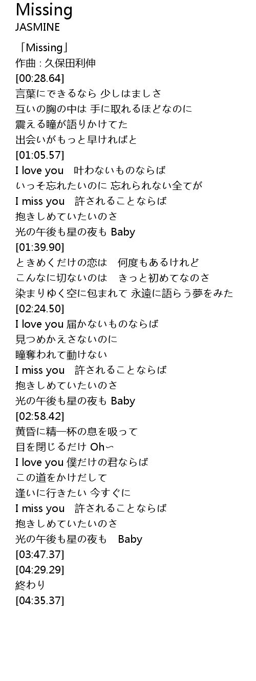 | [03:34.23] | 光の午後も星の夜も Baby |