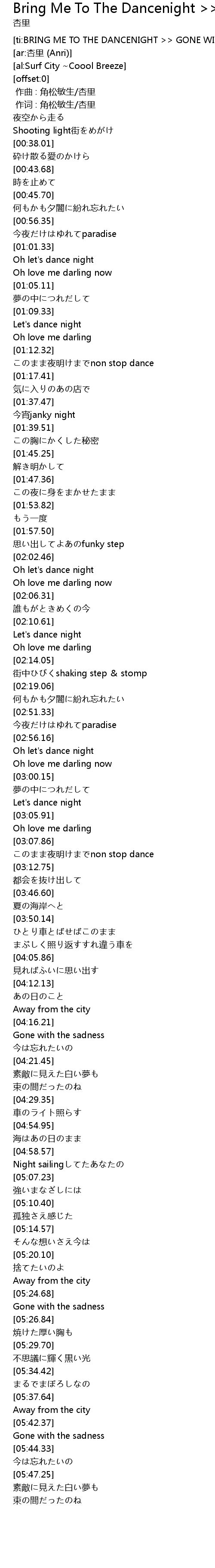 | [03:09.40] | このまま夜明けまでnon stop dance |