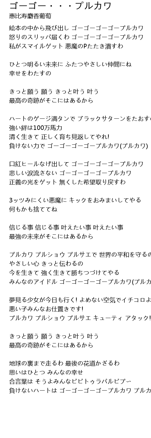 | 負けないハートは ゴーゴーゴーゴープルカワ プルカワ |