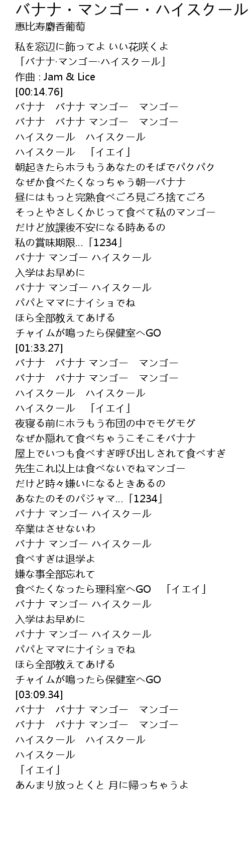 | [02:31.93] | バナナ マンゴー ハイスクール |