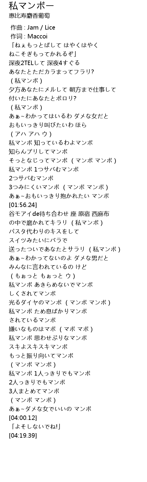| [03:37.58] | 私マンボ 1人っきりでもマンボ |