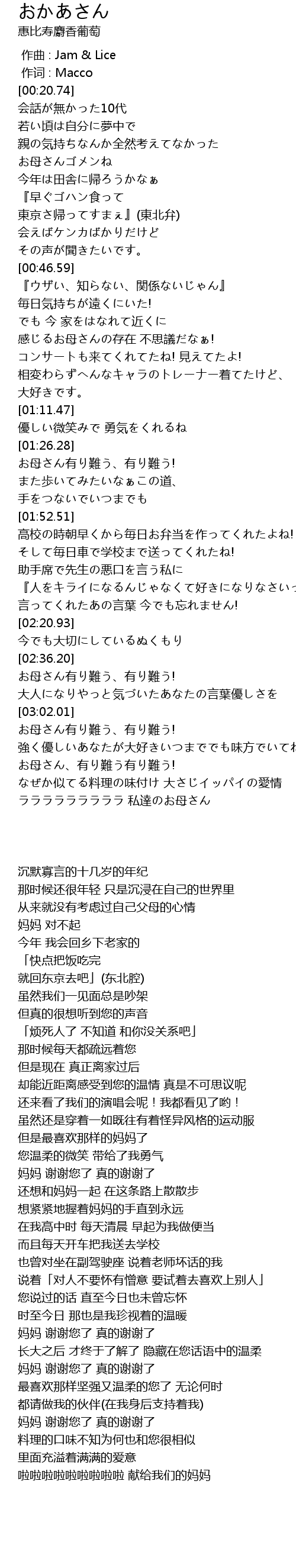 | [04:05.56] | ラララララララララ 私達のお母さん |