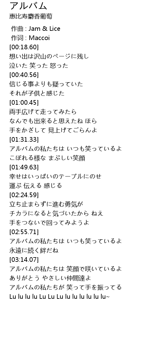| [02:56.58] | アルバムの私たちは いつも笑っているよ |