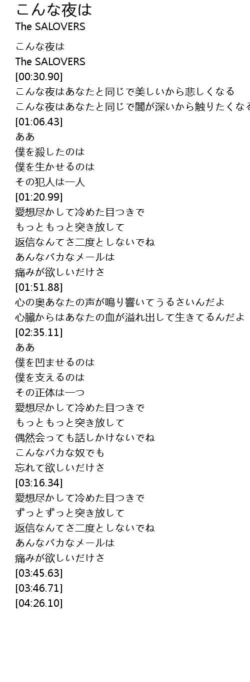 | [00:37.34] | こんな夜はあなたと同じで美しいから悲しくなる |