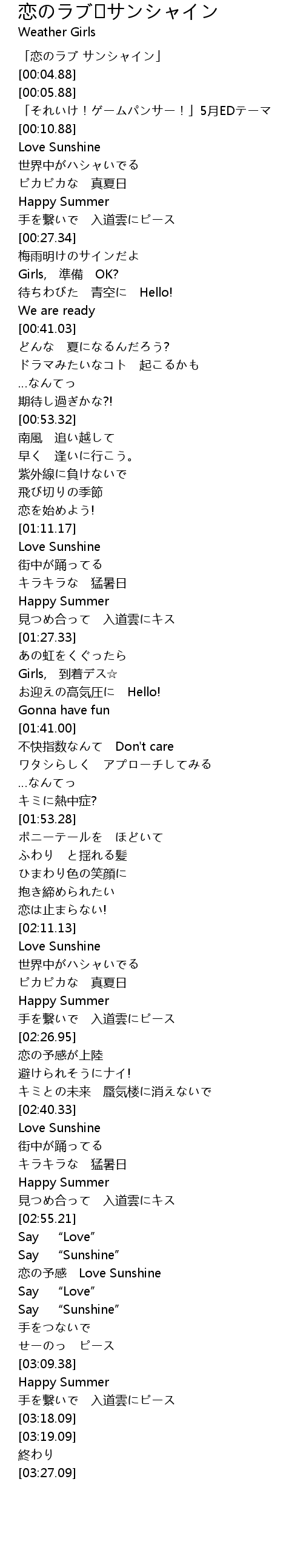 | [02:59.36] | 恋の予感 Love Sunshine |