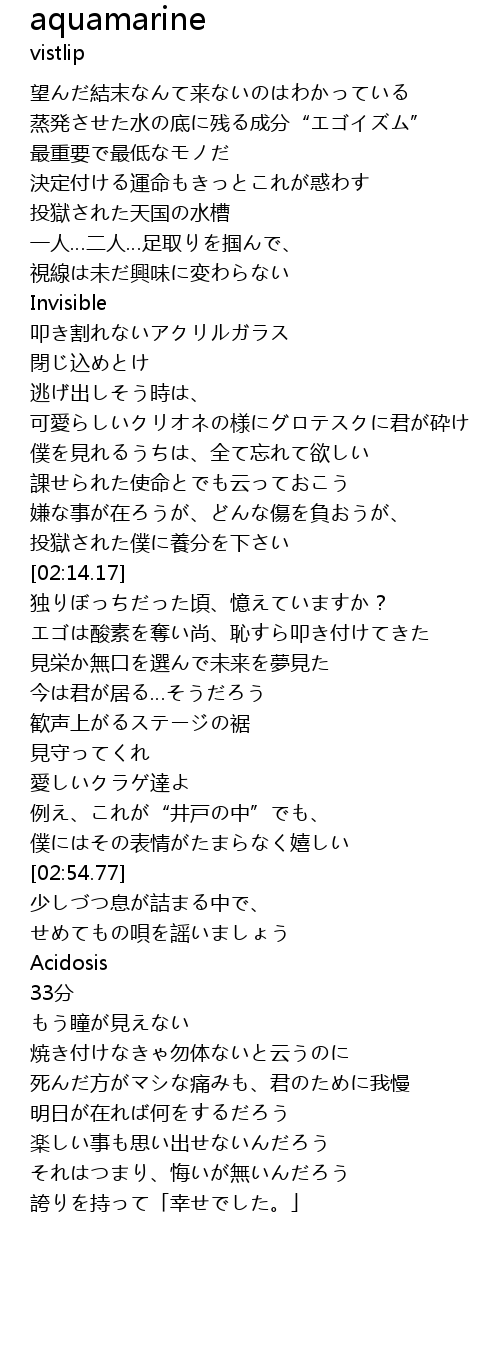 | [01:43.02] | 可愛らしいクリオネの様にグロテスクに君が砕け |