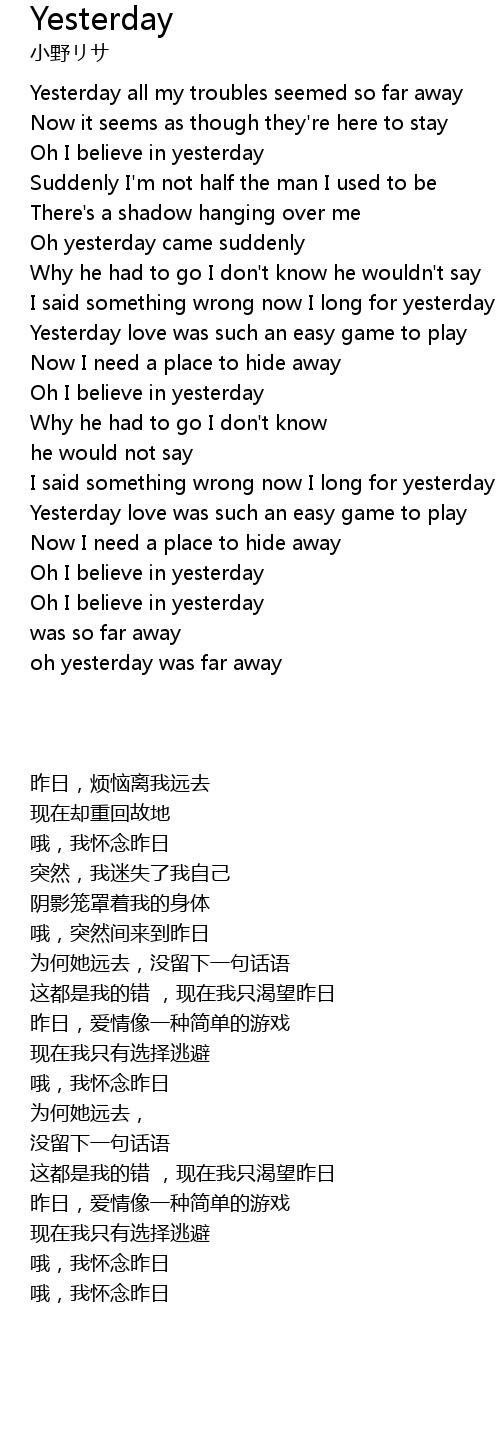 Oh yesterday came suddenly |