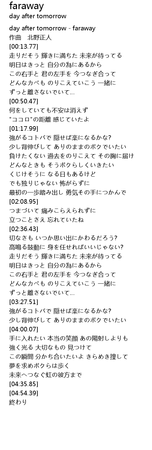 | [00:00.00] | day after tomorrow - faraway |