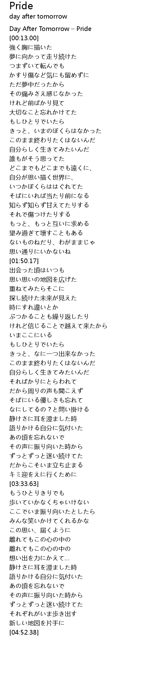 | [00:01.00] | Day After Tomorrow – Pride |
