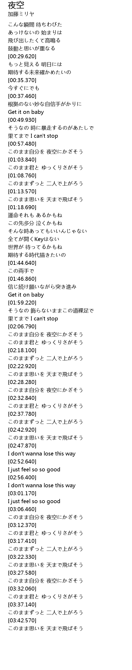 | [02:24.180] | このまま思いを 天まで飛ばそう |