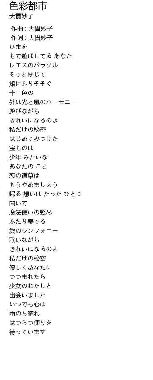 | [00:00.00] | 作曲 : 大貫妙子 |