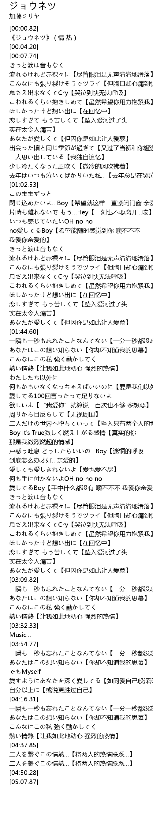 | [00:02.29] | 《ジョウネツ》(情 热) |