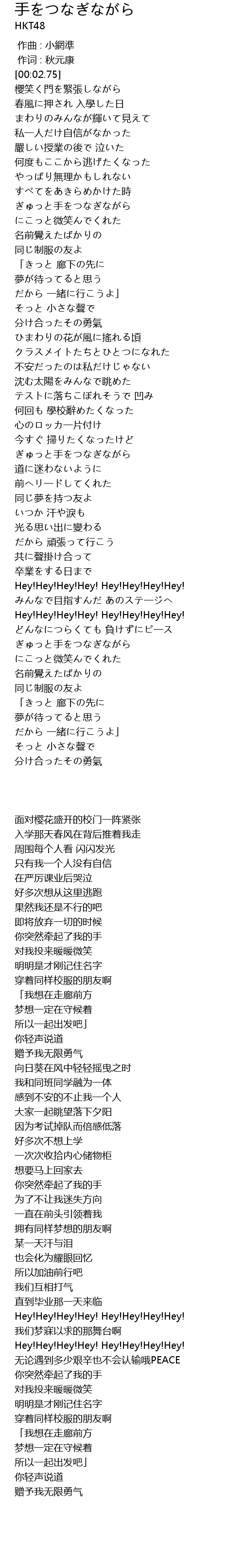| [02:30.15] | ぎゅっと手をつなぎながら |
