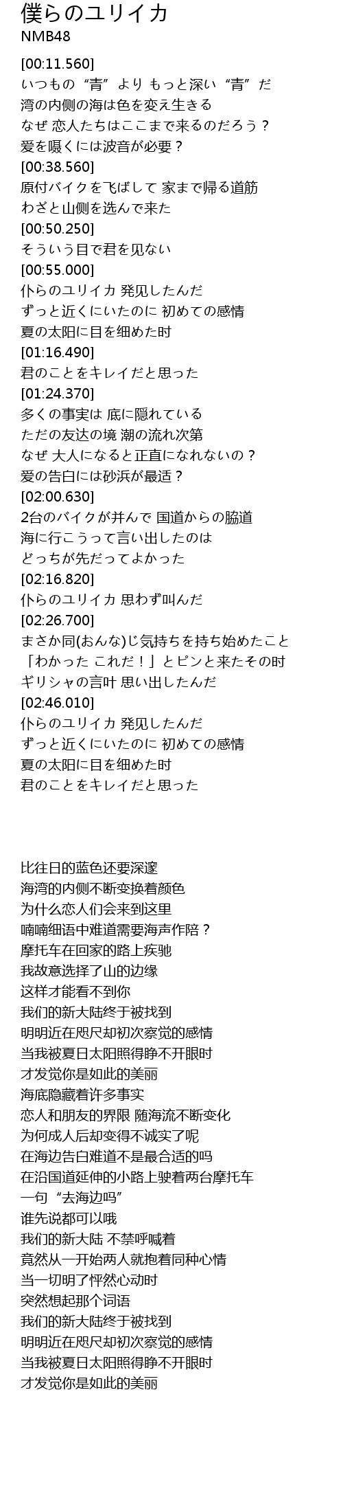 | [01:44.700] | ただの友达の境 潮の流れ次第 |