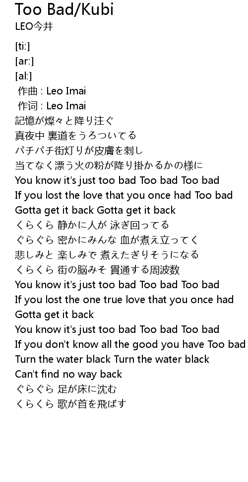 | [02:01.67] | You know it's just too bad Too bad Too bad |