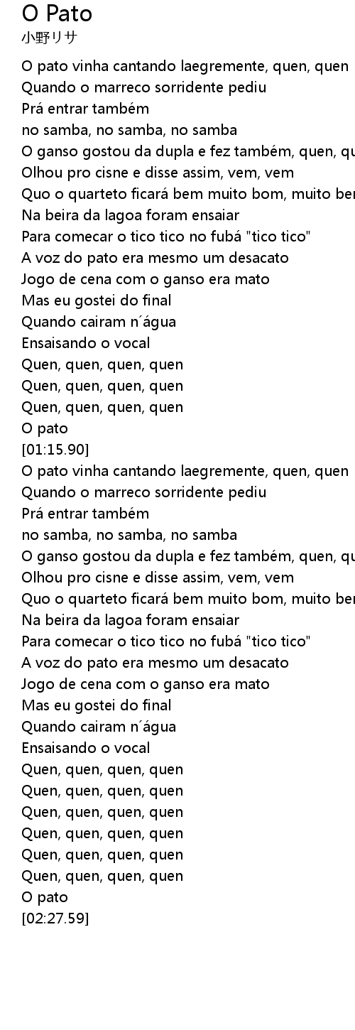 | [00:32.50] | O ganso gostou da dupla e fez tambe m, quen, quen, quen |