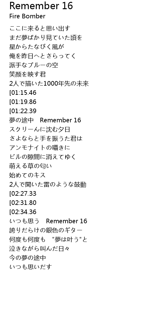 | [01:26.73] | 夢の途中 Remember 16 |