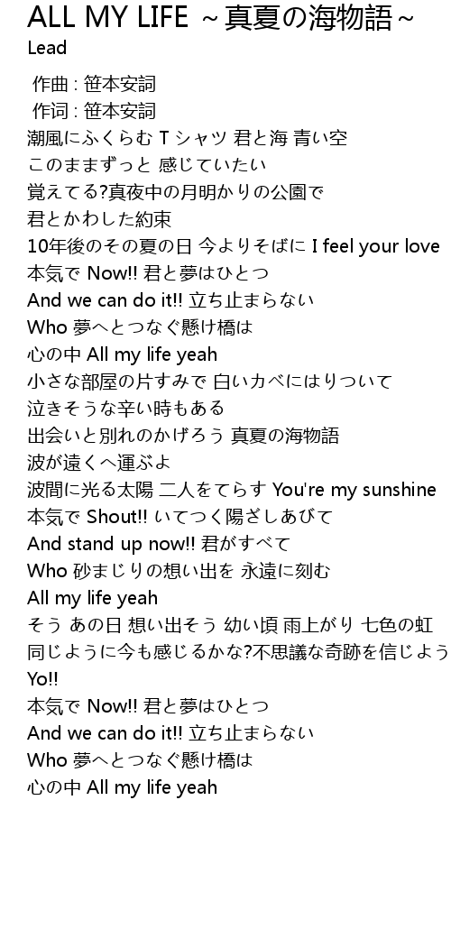 | Song | ALL MY LIFE ~真夏の海物語~ |