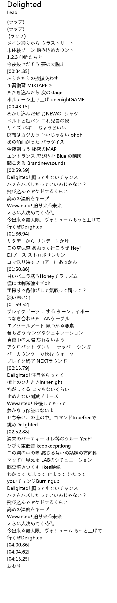 | [03:56.58] | 行くぜDelighted |