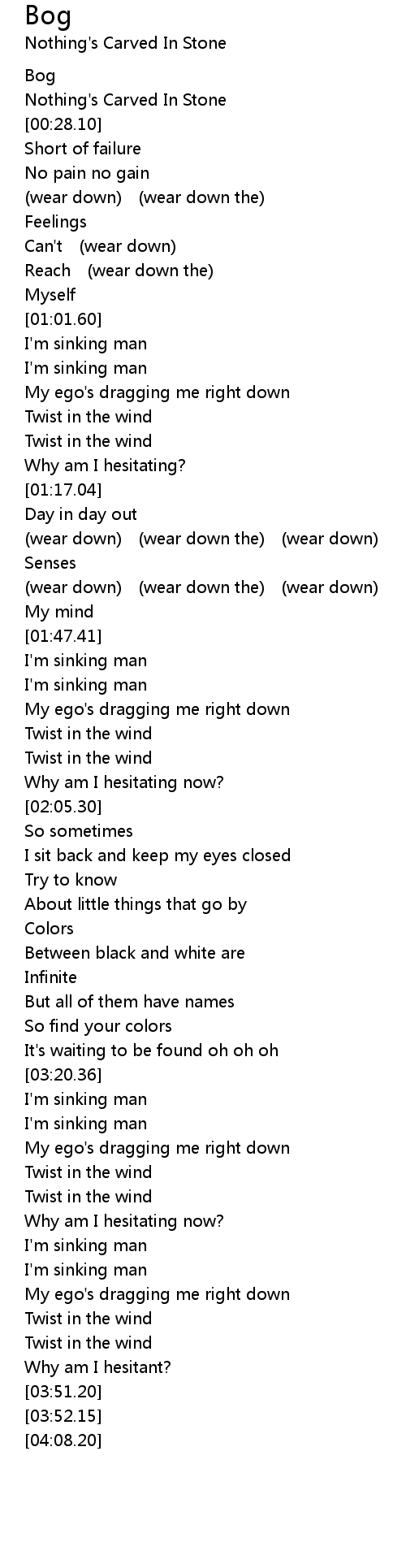 | [00:03.29] | Nothing's Carved In Stone |
