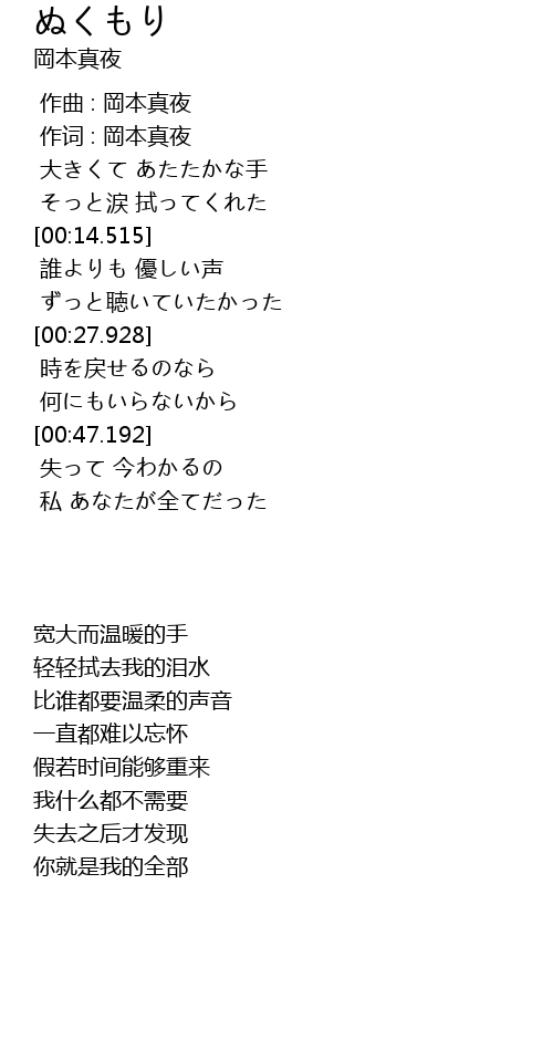 | [00:00.474] | 作词 : 岡本真夜 |