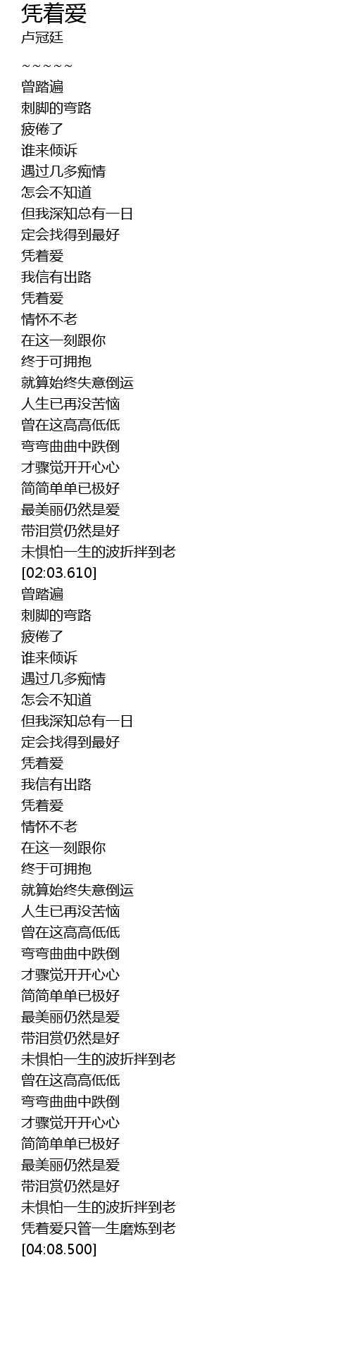 | [03:56.490] | 凭着爱只管一生磨炼到老 |