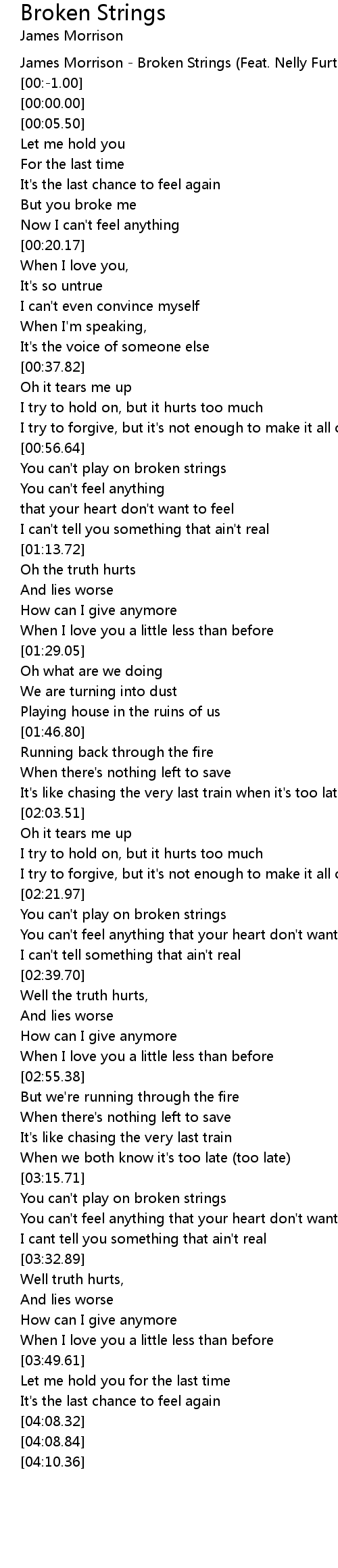 James Morrison - Broken Strings (Feat. Nelly Furtado) |
