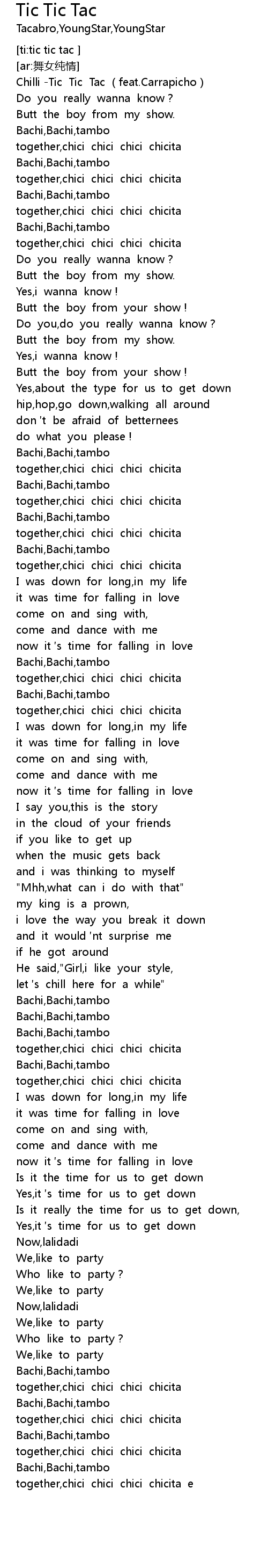 | [00:01.958] | Chilli -Tic Tic Tac (feat.Carrapicho) |