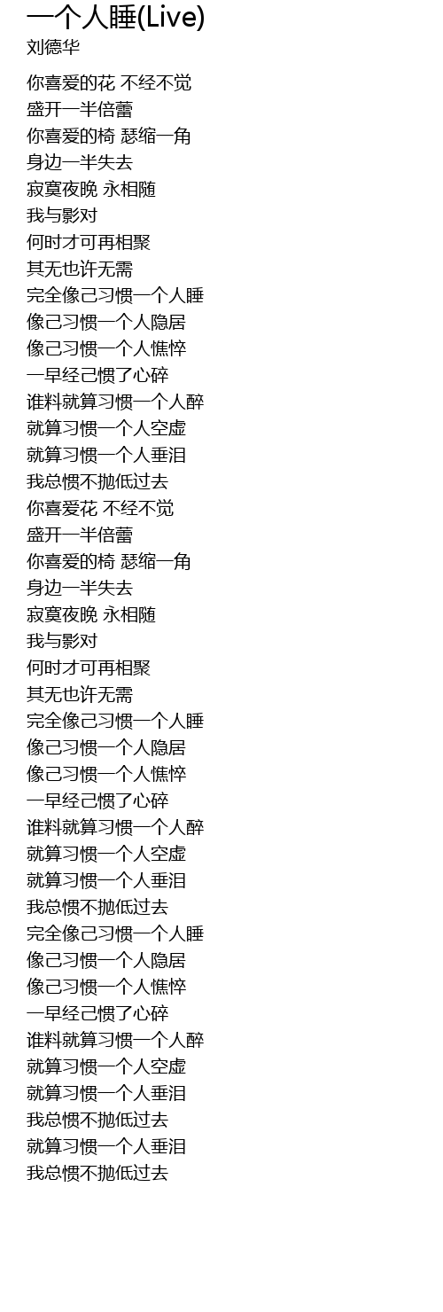 | [01:00.899] | wán quán xiàng jǐ xí guàn yí ge rén shuì |