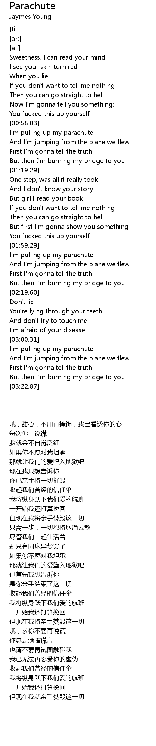I'm pulling up my parachute |