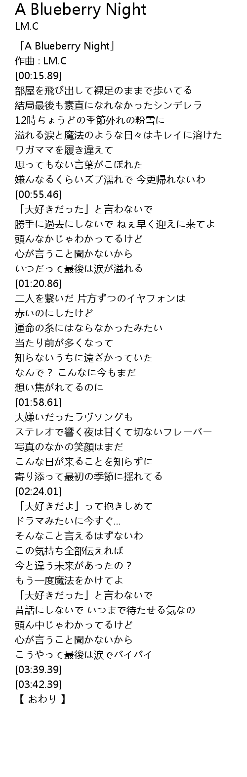 | [00:23.84] | 結局最後も素直になれなかったシンデレラ |