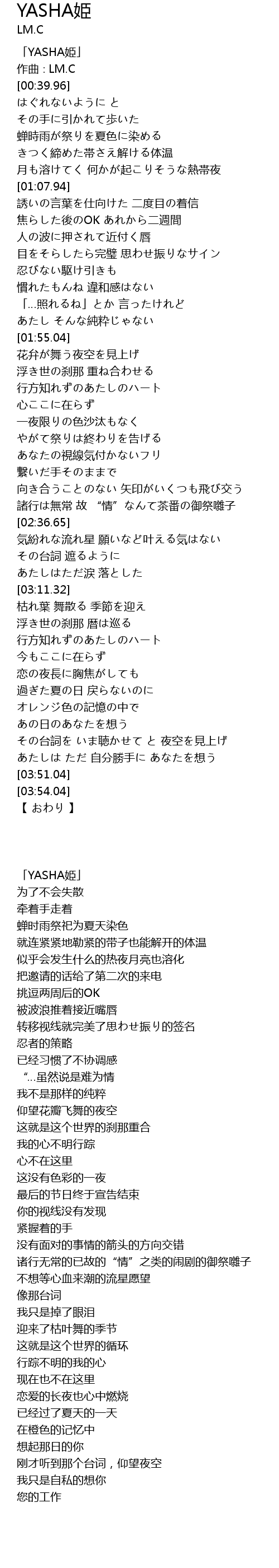 | [01:56.71] | 花弁が舞う夜空を見上げ |