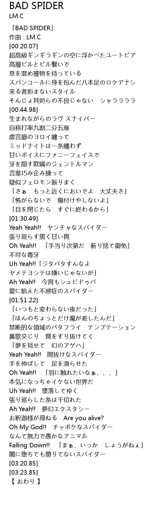 | [00:01.07] | 「BAD SPIDER」 |