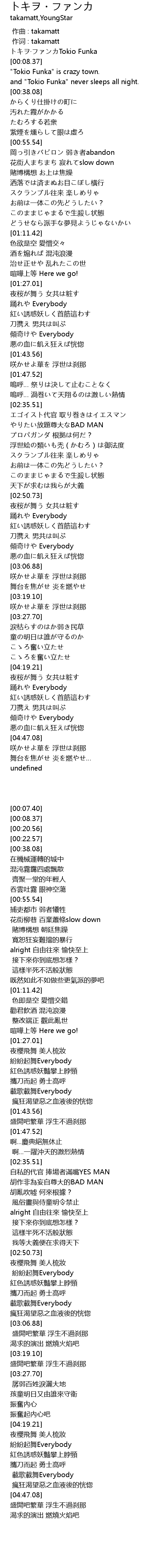 | [00:20.56] | " Tokio Funka" is crazy town. |