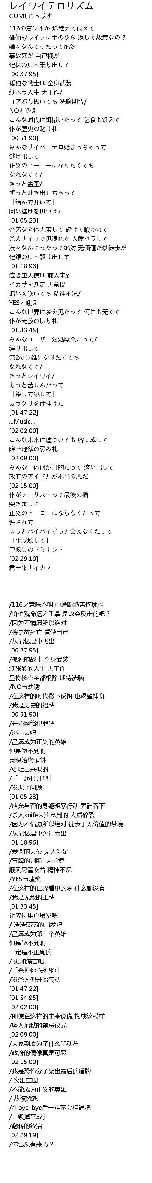 | [02:16.96] | 仆がテロリストって最後の楯 |