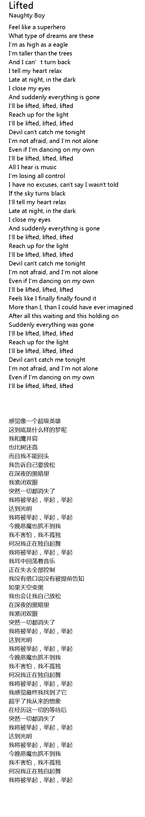 | [00:33.61] | I'll be lifted, lifted, lifted |