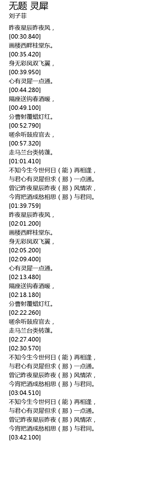 | [03:14.130] | 与君心有灵犀但求(那)一点通。 |