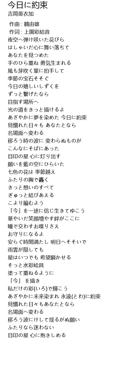 | [03:29.89] | あざやかに未来染まれ 永遠(とわ)に約束 |