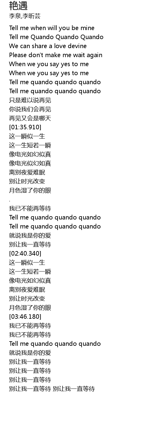 | [02:18.710] | Tell me quando quando quando |