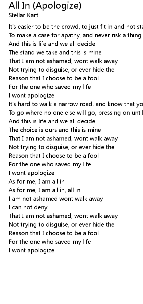 All In (Apologize) Lyrics