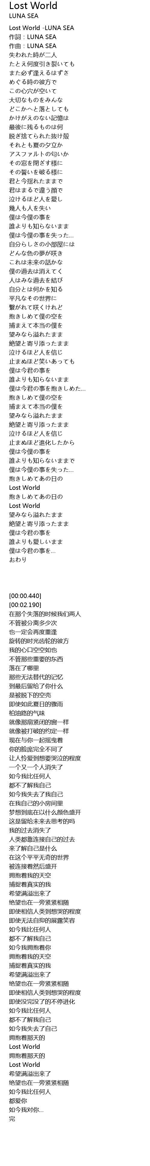 Lost World -LUNA SEA |