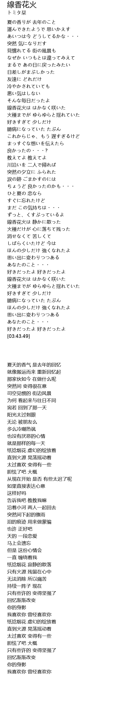 | [01:06.10] | 線香花火は はかなく咲いた |