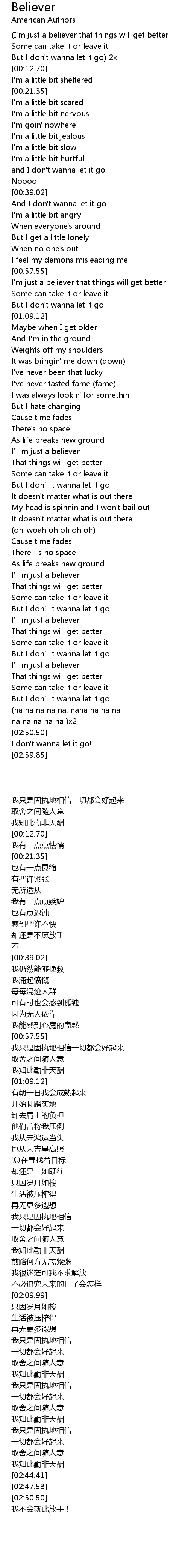 | [02:19.91] | I’m just a believer |