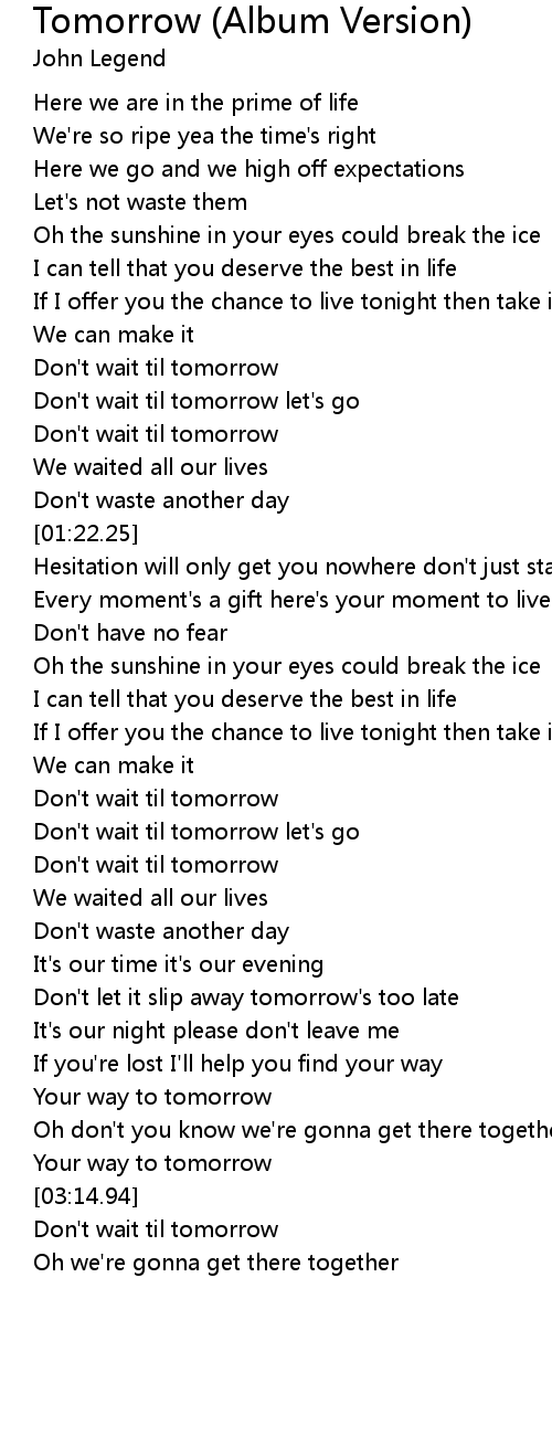 Don't wait til tomorrow |