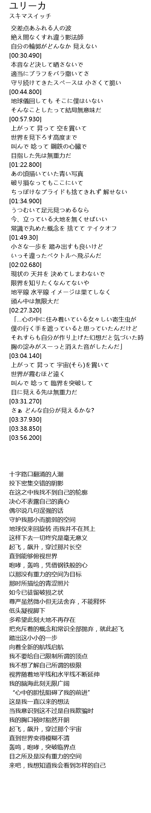 | [03:06.840] | 上がって 昇って 宇宙(そら)を貫いて |