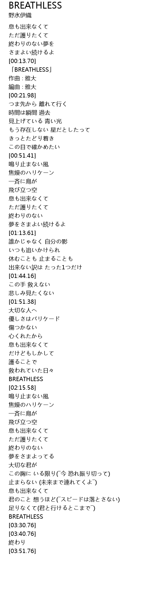 | [03:24.59] | 足りなくて(君と行けるとこまで―) |
