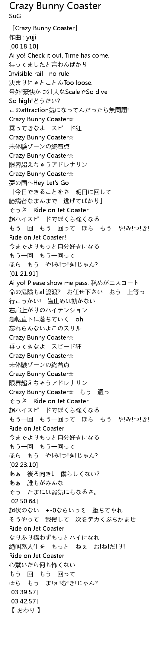 | [00:38.50] | Crazy Bunny Coaster☆ |