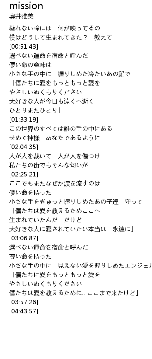 | [03:37.79] | 「僕たちに愛をもっともっと愛を |